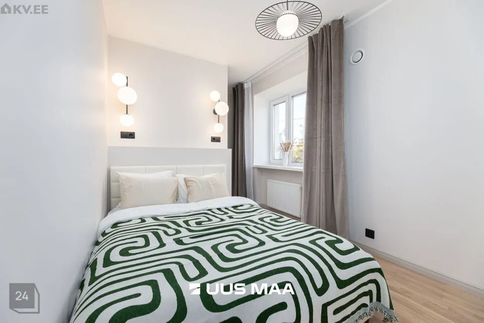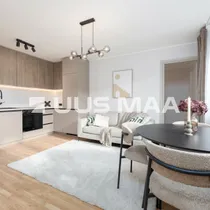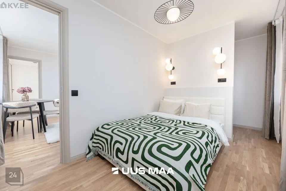 Elutoas on stiilne söögilaud ja toolid, mugav diivan, tv-laud, olemas on ka televiisori ühendamise valmidus. Magamistoas on 140 cm lai voodi, eraldi walk-in garderoob sisseehitatud kapi ja lükandustega. Lisaks on veel üks väiksem magamistuba, mis sobib hästi kas lastetoaks või kodukontoriks.