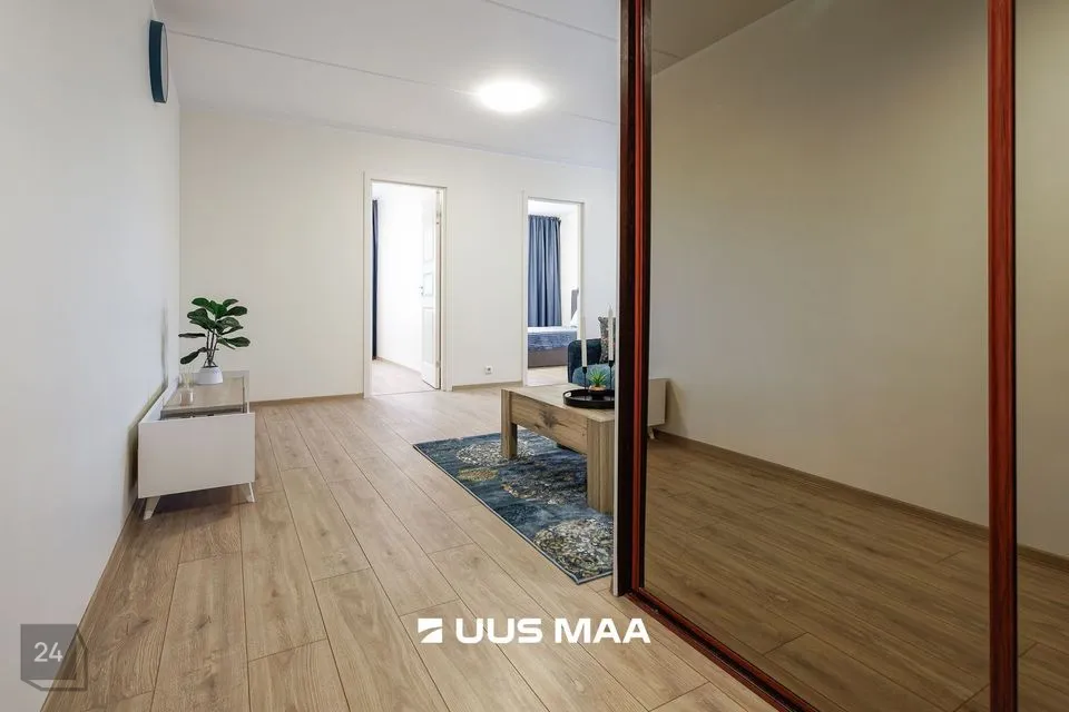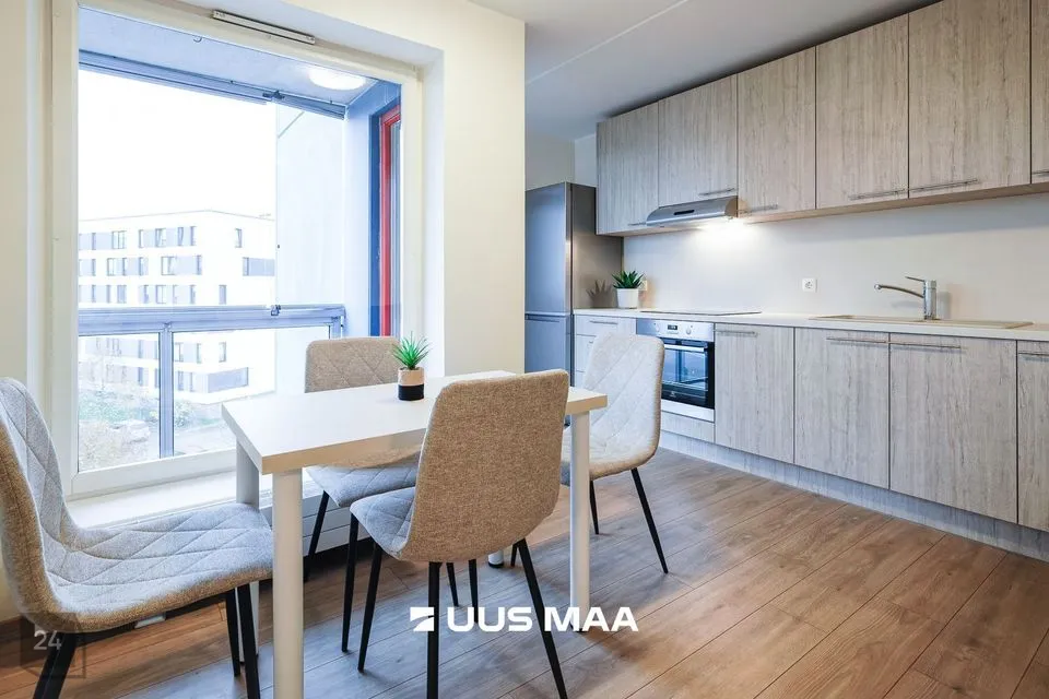Hubane 3-toaline rõduga korter maja 6. korrusel on sisutatud ning valmis saama Sinu uueks koduks. Köögist leiab vajaliku tehnika - olemas on integreeritud pliit ja ahi, külmik ja õhupuhasti. Elutoas oleva mööbli paigutust saab muuta vastavalt oma eelistustele. Üks magamistubadest on möbleerimata, jättes üürnikele võimaluse kujundada sellest kas laste-, külaliste- või kontorituba. Lisaks magamistoas asuvale riidekapile on esikus mahukas garderoobikapp üleriiete, jalanõude jms jaoks. Vannitoas lisab mugavust elektriline põrandaküte ja pesumasin. Rõdu avaneb lõunapäikesele. Kogu piltidel nähtav mööbel ja tehnika jääb üürniku kasutusse. Piltidel on kasutatud illustratiivseid disainielemente.