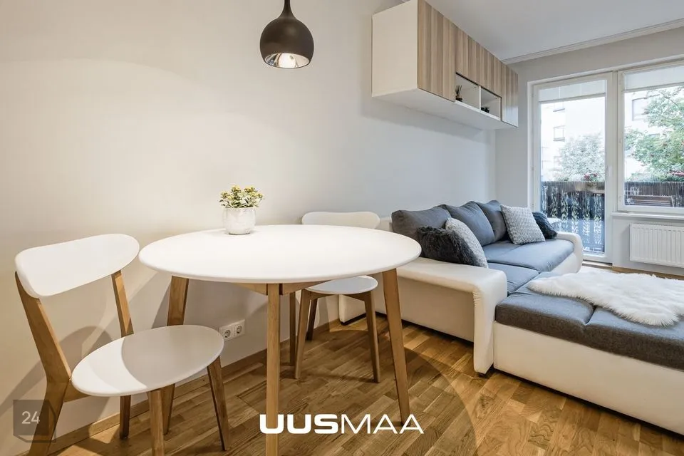 Kaasaegses majas asuva korteri koosseisu kuuluvad elutuba-köök, kust pääseb mõnusale rõdule õhtupäikest nautima, laia voodi ja suure riidekapiga magamistuba, esik, kus on mahukas garderoobikapp ja väike tore panipaik ning tualett-duširuum, kus on kuivatiga pesumasin. Lisaks on võimalus kasutada parkimiskohta maja all soojas parklas ja valvega panipaika.