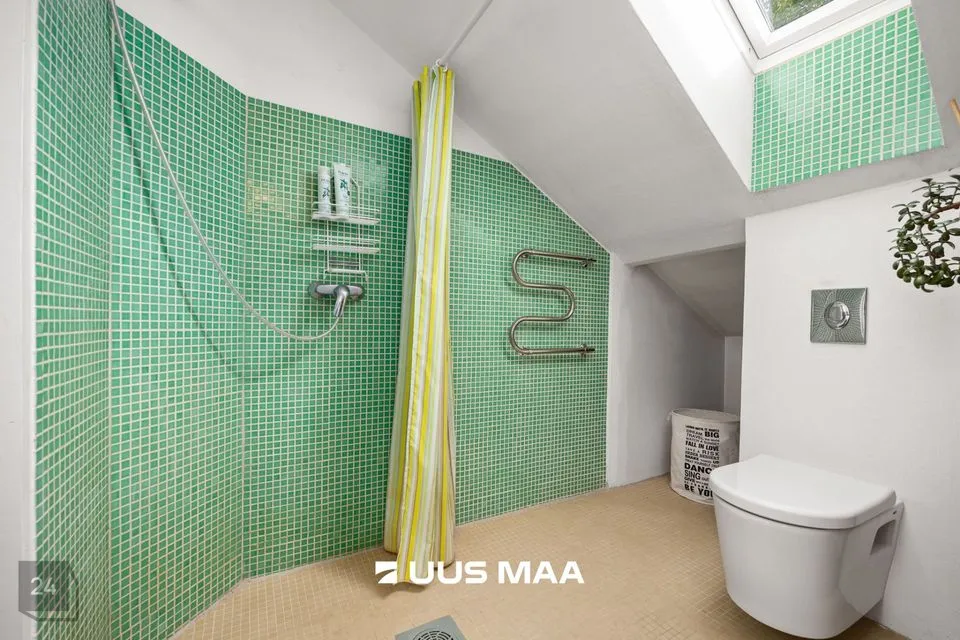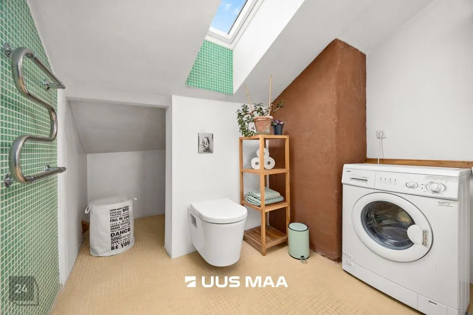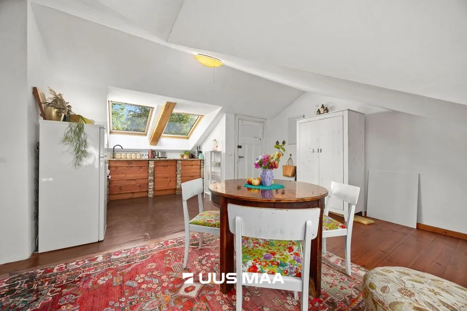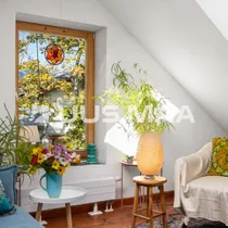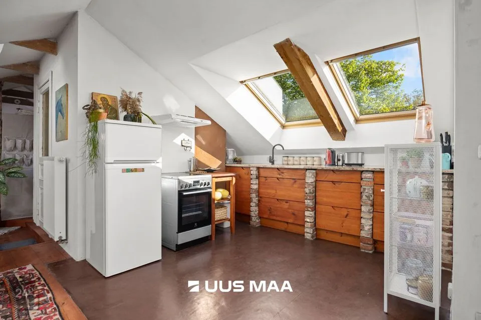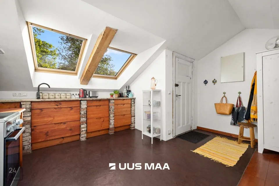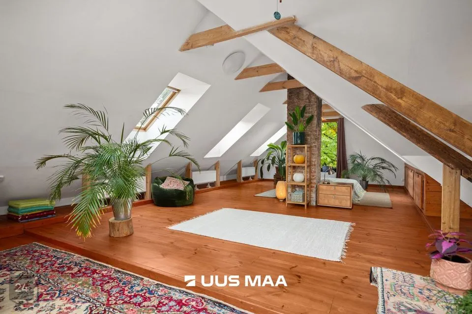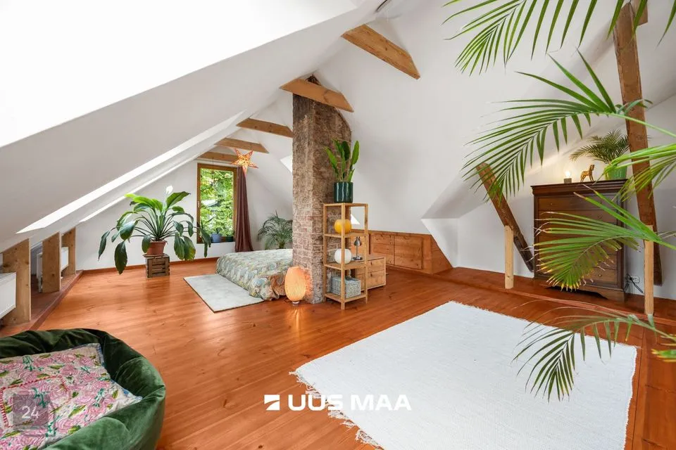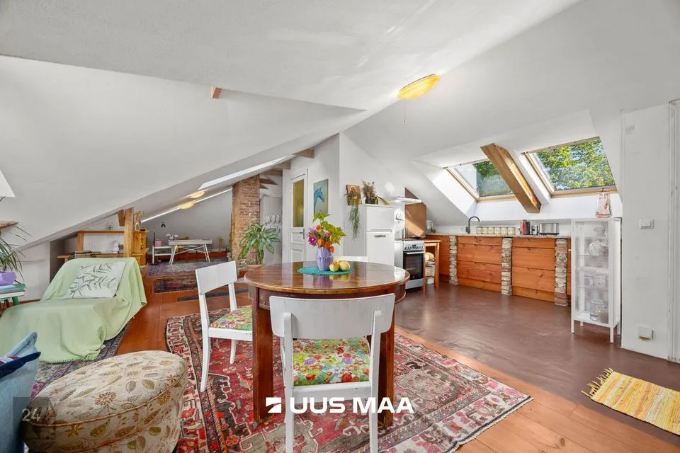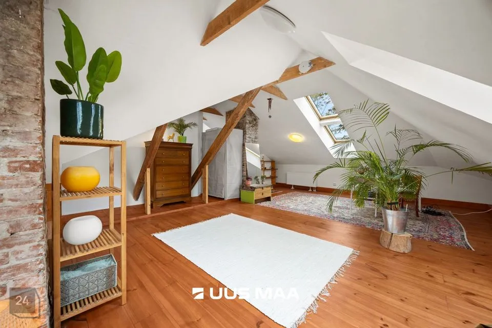 Selles hubases ja avaras katusekorteris on rohkelt aknapinda, mis toob ruumidesse loomuliku valguse pea igast ilmakaarest. Puitlaudisest põrandad ja heledates toonides seinad loovad sooja ja ajatut õhustikku, millele lisavad iseloomu maitsekad värviküllased sisustuselemendid.