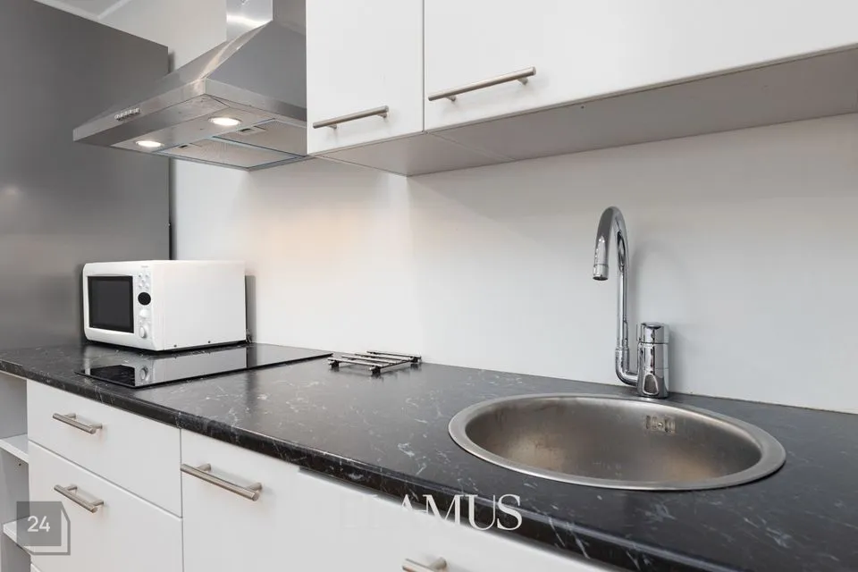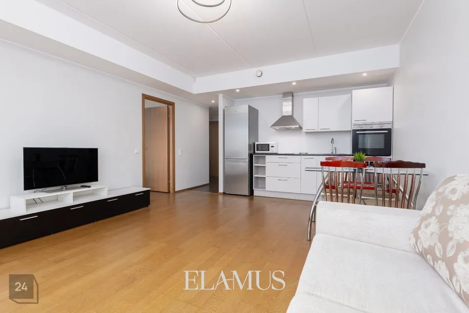 - avatud elutuba/köök, kus kõik eluks vajalik on olemas: köögimööbel vajaliku tehnikaga: 2-auguga induktsioonpliit (uus), külmkapp-sügavkülmikuga (uus), nõudepesumasin (uus), praeahi ning mikrolaineahi. Lisaks söögilaud koos 4 tooliga.
