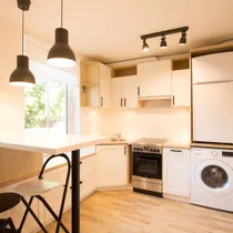 Korterisse sisenedes satute esmalt esikusse, kuhu on võimalik jätta oma üleriided ja jalanõud. Esikust otse edasi astudes satute elutuppa, mis on omakorda ühenduses avatud kööginurgaga. Köögis on olemas kõik mugavaks elamiseks vajalik, sh piisavalt sahtleid ja riiuleid asjade paigutamiseks ning kvaliteetne köögimööbel koos köögitehnikaga. Pesumasin asub samuti köögis.