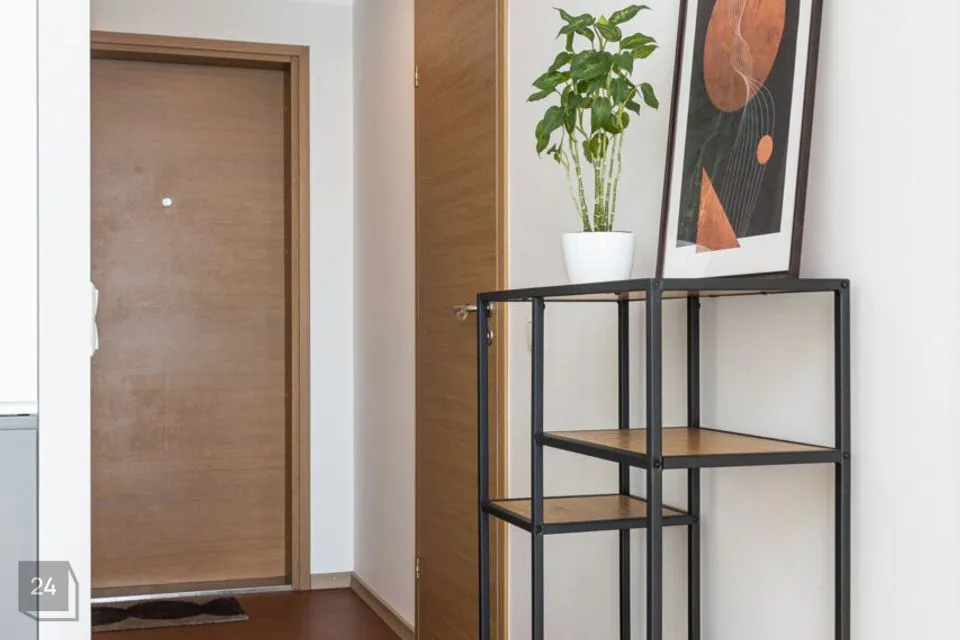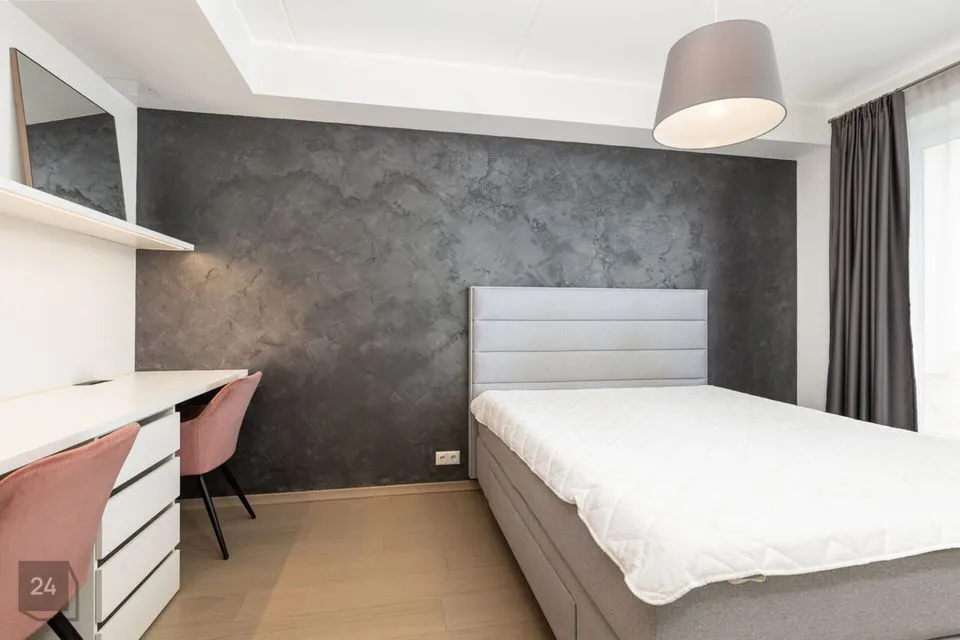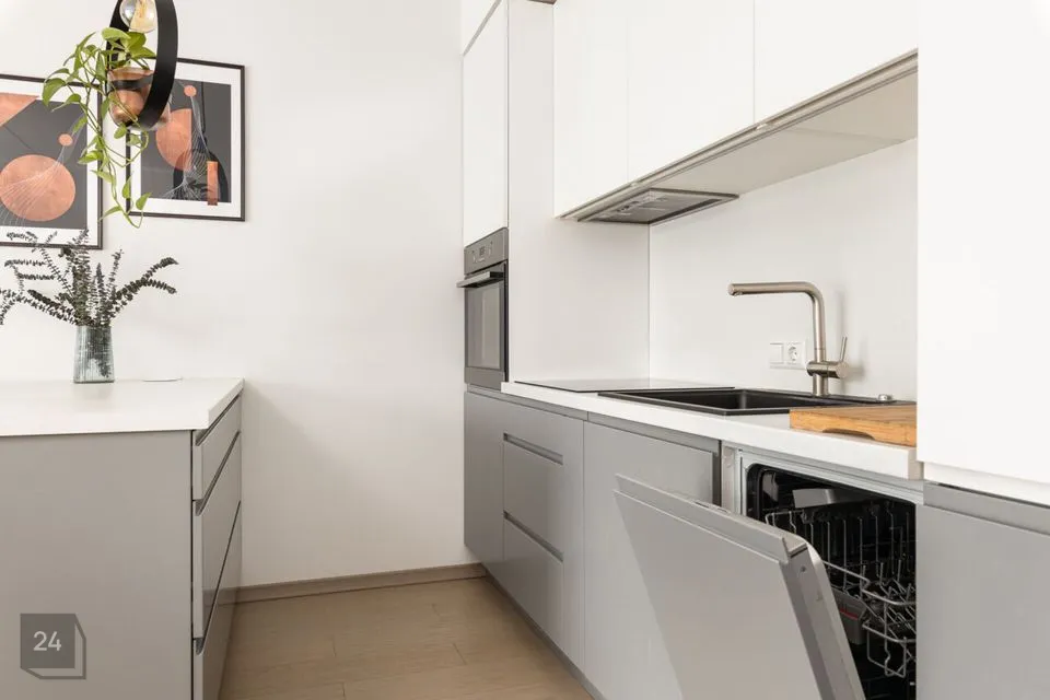 Möbleeritud korter sisaldab köögimööblit integreeritud tehnikaga (induktsioonpliit, ahi, külmik, kubu, nõudepesumasin) ja sisseehitatud kapid esikus ja magamistoas. Magamistoas voodi ja elutoas mööbel koos TV ja diivaniga.