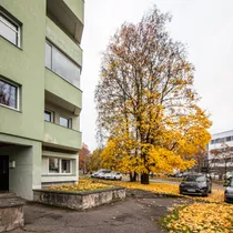 Privaatsus on tagatud: ühel pool on madalad eramajad, teisel pool tihedad lehtpuud, mis varjavad korteri vaatevälja ja pakuvad rohelust.