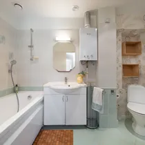 Bathroom: combined toilet and bathroom, bathtub, washing machine