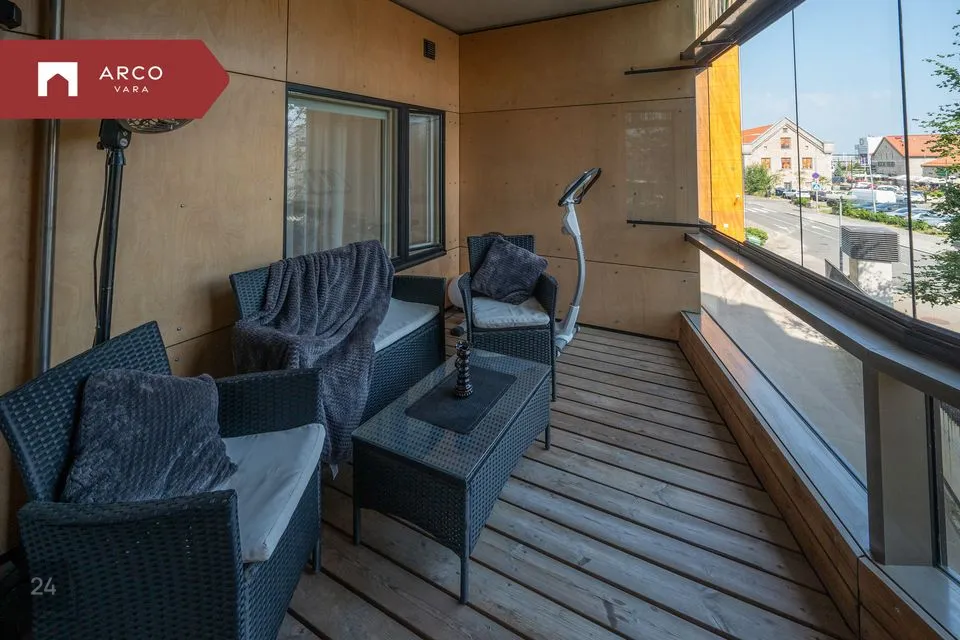 Korteri krooniks on suur klaasitud rõdu (9 m²) – ideaalne koht hommikukohviks või õhtuseks lõõgastumiseks.