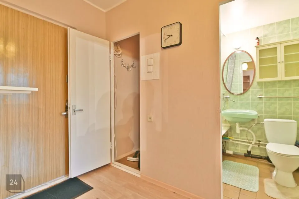 Korteris toas ja köögis ning esikus tehtud san. remont, plastikraamidel pakettaknad, toas põrandal kasepuust kilpparkett, köögis põrandal laminaatparkett, vannituba ja wc asetsevad koos.
