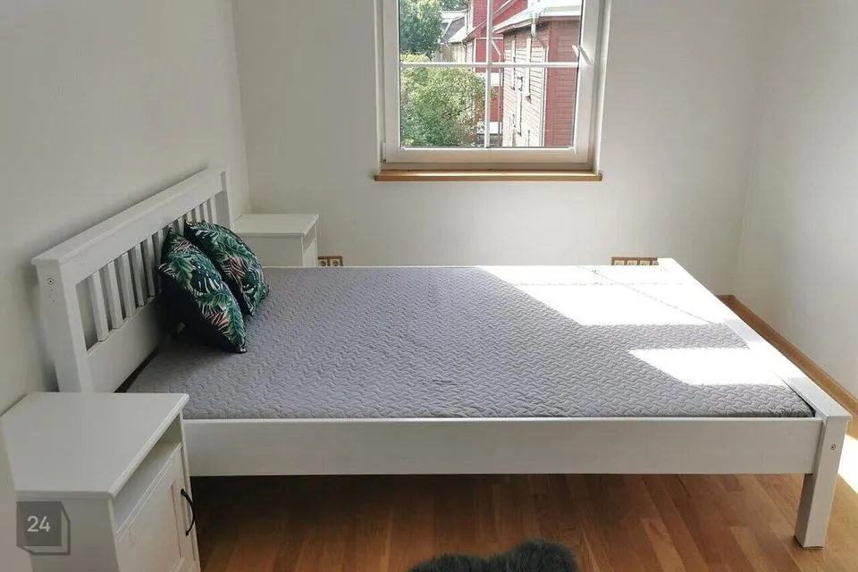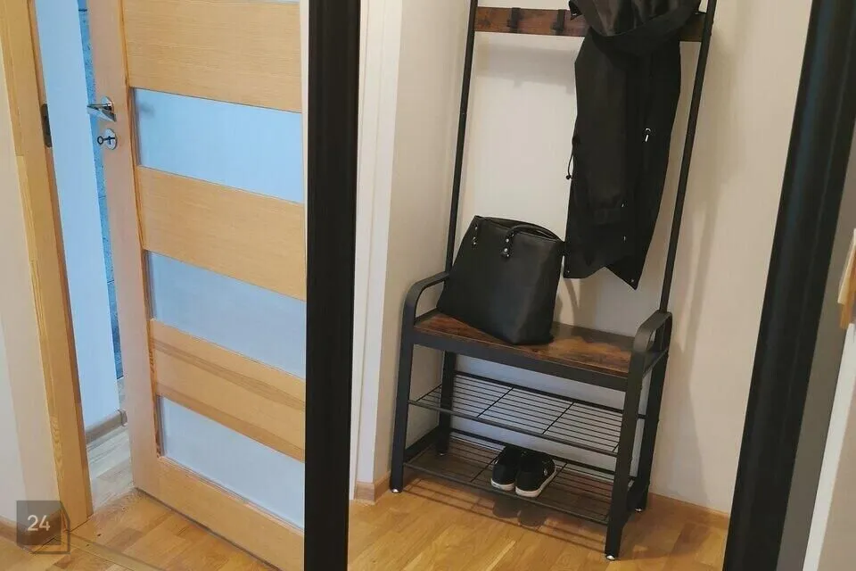 Korterisse sisenedes satute esmalt esikusse, kuhu on võimalik jätta oma üleriided ja jalanõud. Esikust paremale jääb hubane magamistuba, kus asub mõnusalt lai kaheinimese voodi ja mahukas riidekapp.