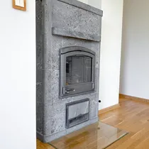 Elutoas loob meeleolu ja annab juurde romantilist lisatooni klaasustega puiduküttel ja soojustsalvestav Tulikivi kamin, millega saab kütta tervet korterit.