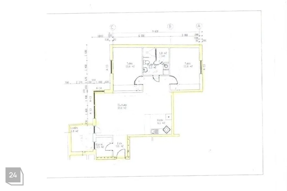 - avar elutuba avatud köögiga (39 m2) ja sisehoovi avaneva rõduga (ca 6,8 m2),