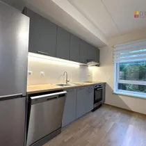 Köögis on kvaliteetne sisseehitatud mööbel ja täielik integreeritud köögitehnika: nõudepesumasin, ahi, pliit, külmkapp ja kubu.