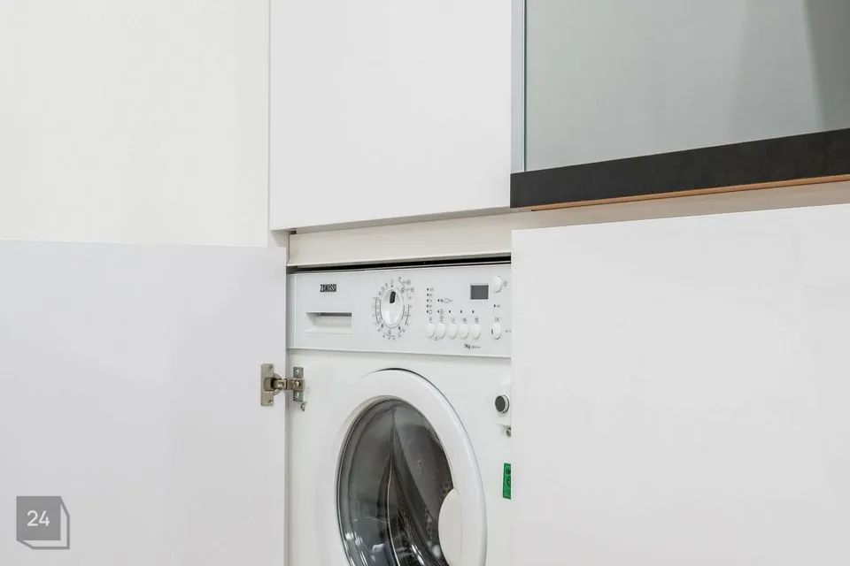 Köögimööbel on varustatud integreeritud tehnikaga- nõudepesumasin, kubu, induktsioonpliit, pesumasin, külmik.