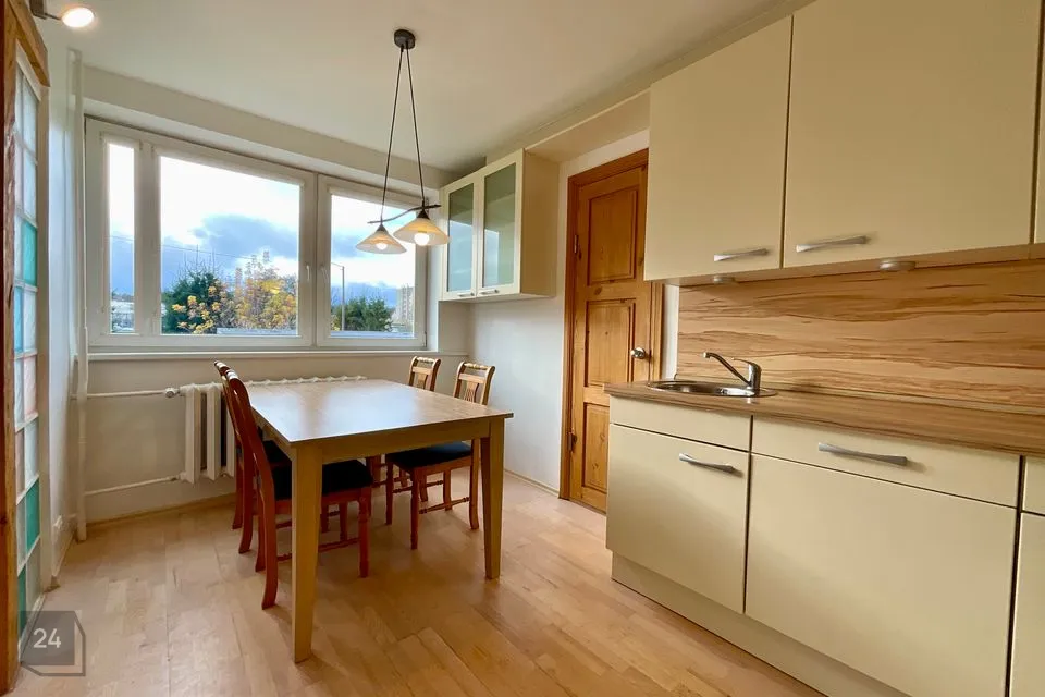 Korter on suures osas möbleeritud. Köögis on köögimööbel, külmkapp, nõudepesumasin, pesumasin, elektripliit/ahi ja söögilaud-toolid. Köögi kõrval on aknaga sahver/panipaik riiuliga. Esikus on suur garderoobkapp, elutoas diivan ja söögilaud-toolid. Ühes magamistoas on suur voodi ja mahukas kapp.