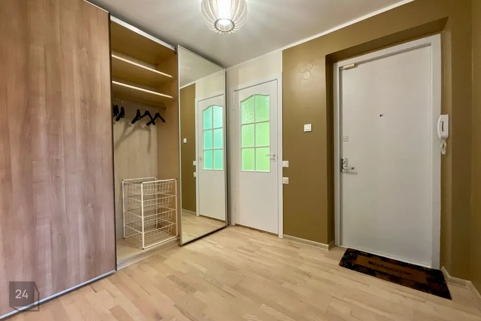 Korter on läbi maja planeeringuga, avar ja valgusküllane. Toad on eraldi. Korteris on avar esik, elutuba, 2 magamistuba, köök sahvriga, wc ja dušš. Kõigis tubades on uued aknad, põrandaid katab parkett, seinad on värvitud heledates toonides.