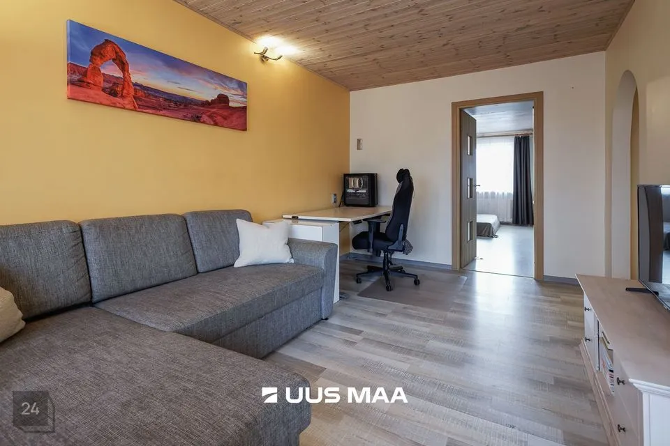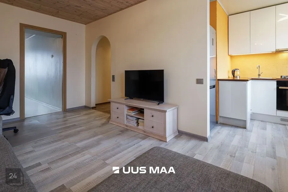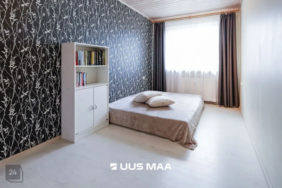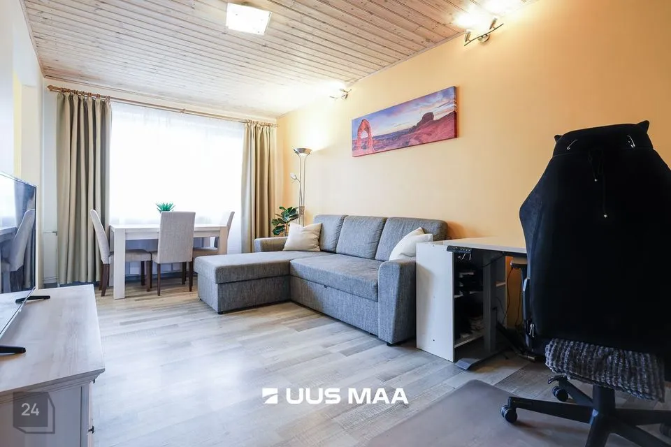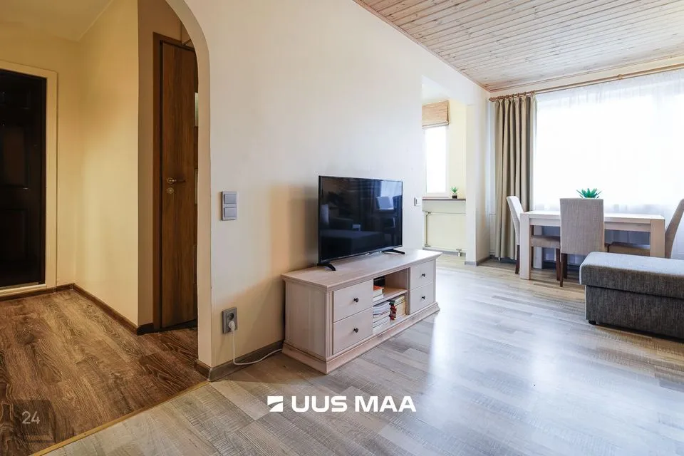 Üürnike kasutusse jääb kogu piltidel nähtav mööbel ja kodutehnika. Korteris on esik, elutuba, magamistuba, osaliselt avatud köök ning koos asuvad vannituba ja tualettruum. Elutoas olev pesukastiga diivan käib lahti ehk vajadusel saab teha sellest ajutise lisa magamisaseme. Kontorilaud on suur, mahutades vajadusel ka mitu kuvarit. Riided ja muu saab paigutada magamistoas asuvasse mahukasse garderoobikappi. Voodiraami lisamise osas on võimalik läbi rääkida. Köögis lisab mugavust nõudepesumasin. Põrandaid katab laminaatparkett ning seinad on osaliselt tapetseeritud, osaliselt värvitud. Elutoast pääseb maja esiküljele jäävale rõdule.