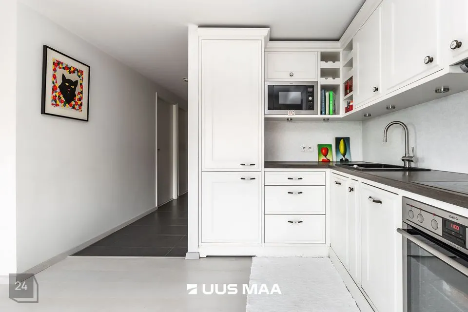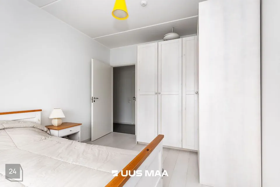 Hoone seitsmendal korrusel asuvas korteris on avatud köögiga elutuba, suur magamistuba, lastetuba, vannituba-tualettruum ning mahukate garderoobikappidega esik. Elutoast pääseb päeva- ja õhtupäikesesse avanevale rõdule. Korter on täielikult sisustatud, köök on varustatud kogu mugavaks kokkamiseks vajalikul tehnikaga. Korteri siseviimistlus on Skandinaavialikult looduslähedastes toonides, pikitud oskuslikult valitud omanäoliste detailidega, korteri plaanilahendus on funktsionaalne ja kasutab ära loomuliku valguse. Seitsmes korrus tagab privaatsuse, rahu ja ilusad vaated. Üürniku kasutusse antakse panipaik, mis mahutab kogu pere jalgrattad ning muud. Tõkkepuuga suletud hoovis on kindel ainukasutuses parkimiskoht ühele autole. Võimalus on korteriühistult lisaks üürida veel üks parkimiskoht.