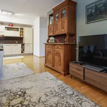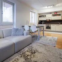 Korterisse jääb fotodel nähaolev mööbel, tehnika, valgustid ja aknakatted.