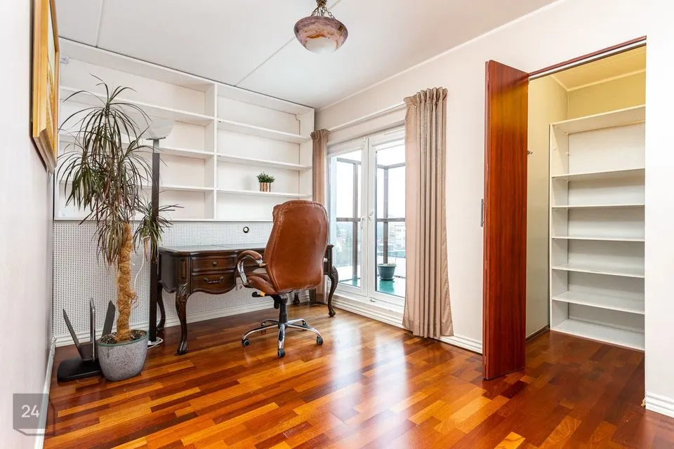 Nii elutoast kui ka ühest magamistoast/kabinetist pääseb rõdule.