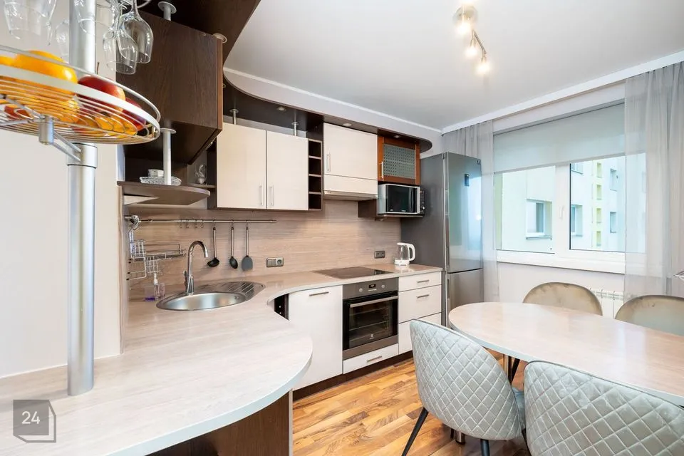 Korteri sees kvaliteetne köögimööbel koos kvaliteetse tehnikaga (kubu, pliit, ahi, nõudepesumasin). Vannitoas plaaditud põrand on koos elektripõrandakütega. Vannitoas on olemas pesumasin.