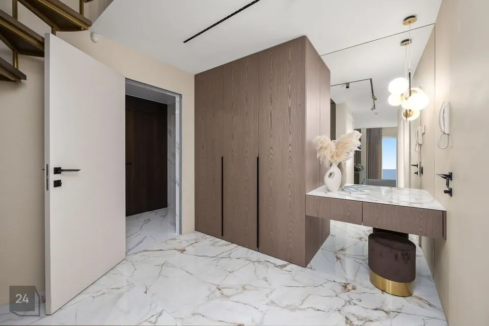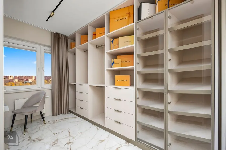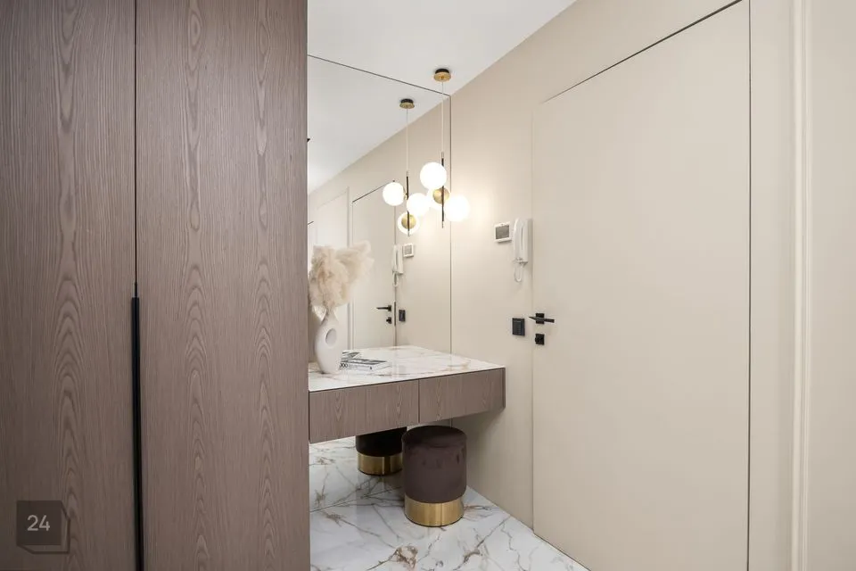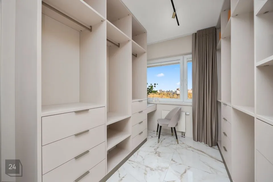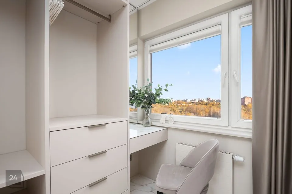 Alumise korruse masterbedroomi kõrval garderoobituba koos tualettlauaga.