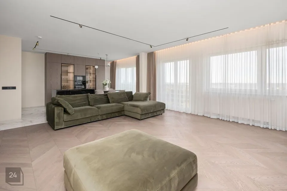 Korter on 147,2 m2, millele lisandub 37,8m2 terrass, asub maja 8. ja 9. korrusel.