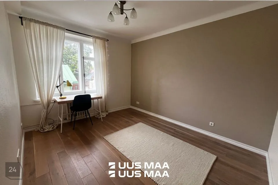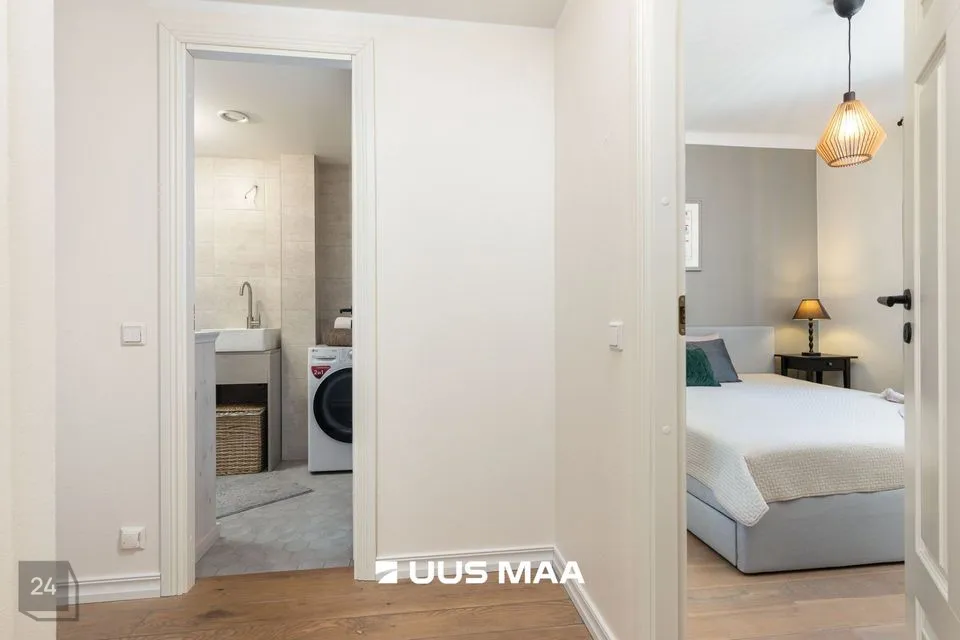 Esikust pääseb avarasse avatud köök elutuppa, mille akendest avaneb vaade sisehoovile. Köök on varustatud eluks vajalike ja kvaliteetse köögitehnikaga. Magamistubadest avaneb vaade vaiksele tänavale. Ühes magamistoas on suur sisseehitatud garderoobkapp ja voodi. Kontor/magmistoas on kirjutuslaud, mille taga saab teha tööd ja nautida vaadet vaiksele ühesuunalisele tänavale. Vannitoas on nii vann kui ka dušš ning lisaks veel pesumasin.