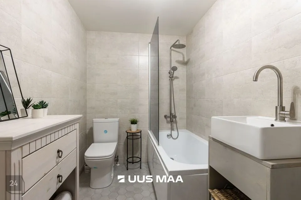 Tubade siseviimistluses on kasutatud heledaid ja naturaalseid toone, mis muudavad korteri hubaseks ja avaraks. Põrandaid katab naturaalne parkett ja vannitoas annab soojust põrandaküte. Küttelahenduseks on hetkel kasutusel infrapuna küttepaneelid.