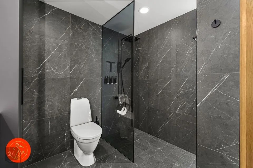 Eluruumides on põrandatel naturaalne puitparkett. Vannitoa põrandat ja seinu ning esiku põrandat katavad kvaliteetsed keraamilised plaadid, pakkudes väljapeetud elavust ja soliidsust.