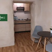 Köök-elutoas on köögimööbel, kraanikauss, väike elektripliit ja kubu. Olemas on lai kaheinimesevoodi, 2-poolega riidekapp ning laud kolme tooliga. WC ja duširuum on eraldi, olemas on pesumasin.