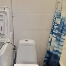 Vannituba ja WC on koos, olemas on ka pesumasin.