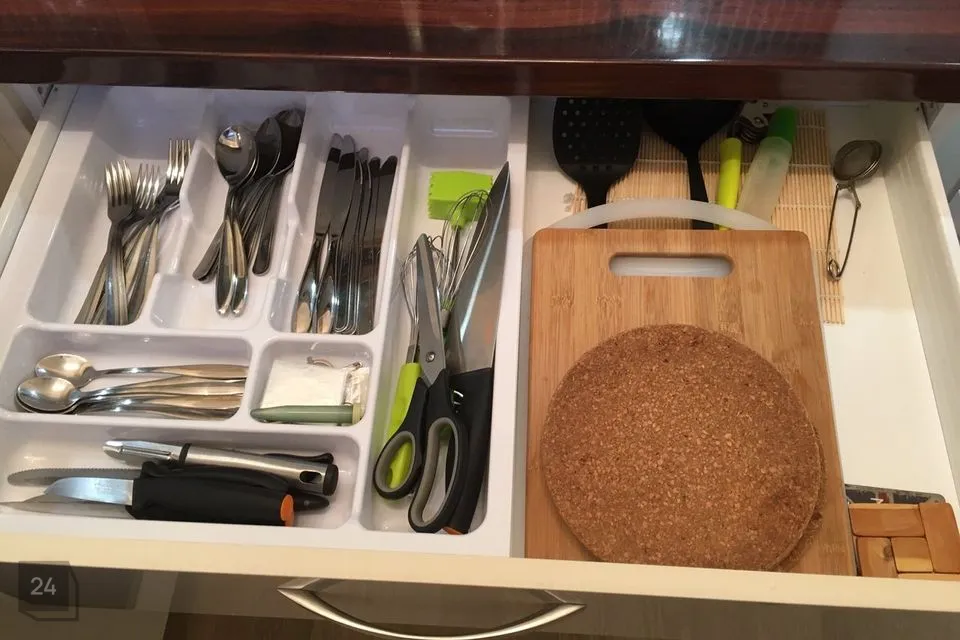 Eritellimusel valminud köögimööbel koos -tehnikaga (elektripliit, õhupuhasti, külmkapp).