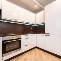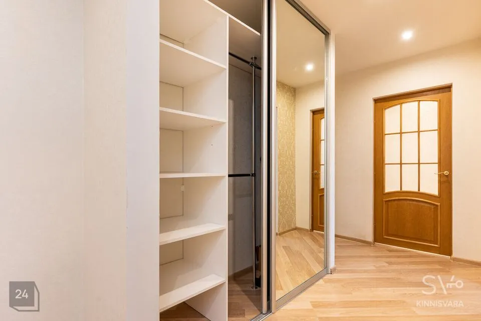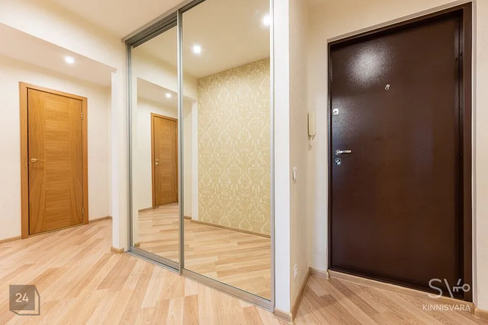 Siseviimistlus on tehtud heledas toonides, kolm mahuka garderoobikappi. Köögis paigaldatud köögimööbel integreeritud tehnikaga (elektripliit, ahi, külmkapp, õhupuhasti).