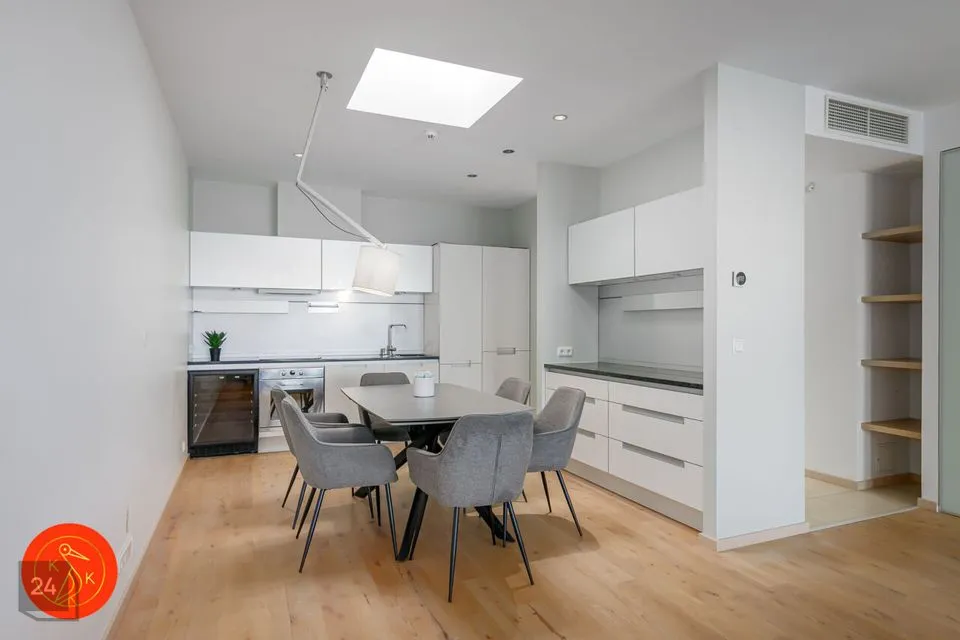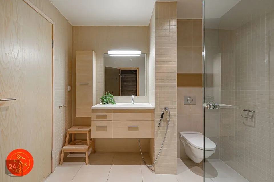 Korter on kujundatud neutraalsetes heledates toonides ning kasutades vaid vastupidavaid ja kvaliteetseid materjale. Korteri põrandaid katab puitparkett, vannitubade põrandaid ning seinu katavad soojades toonides plaadid.