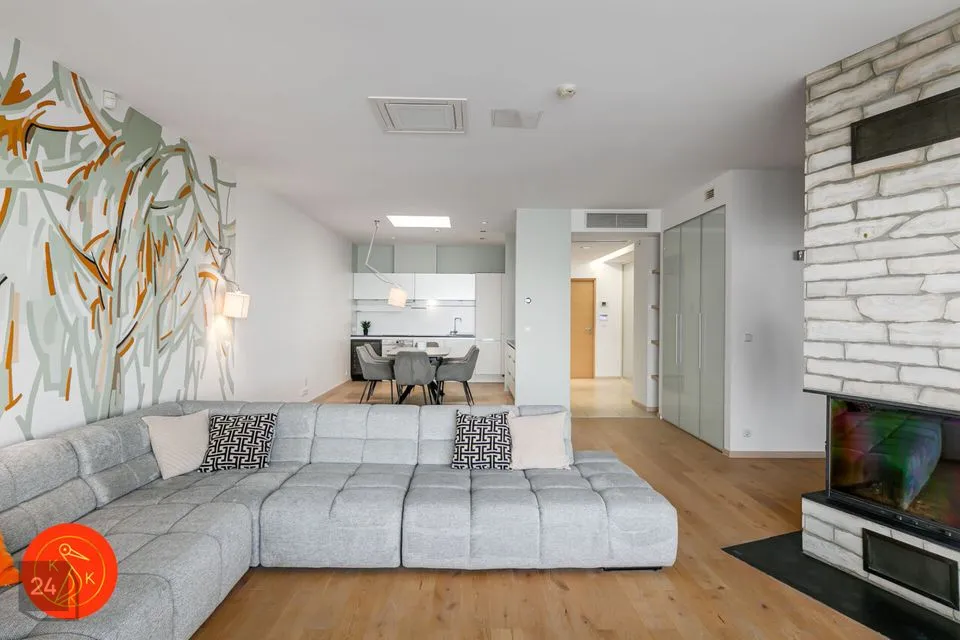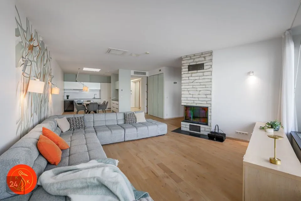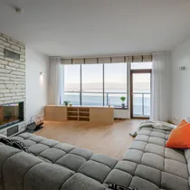 Elutoas on olemas ka kamin. Korteril on avar planeering ning rohkelt loomulikku valgust, millele aitavad kaasa suured aknad ja päikeseline merevaatega terrass, mis lisab kodule õdusa ja hubase atmosfääri.
