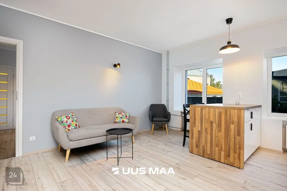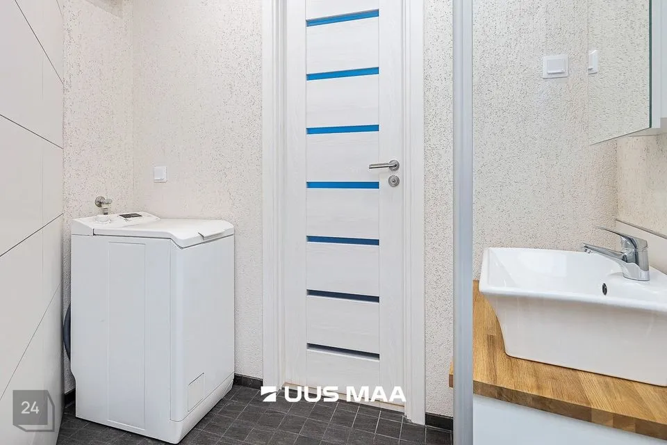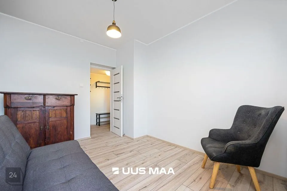 Korter ja maja on äsja läbinud põhjaliku renoveerimise. Uus köögimööbel koos külmiku, keraamilise pliidi, kubu, ahju ja nõudepesumasinaga ning pukktoolidega köögisaar. Magamistoas suur garderoobikapp ja lai voodi. Elutoas diivan, tugitool, diivanilaud ja kapp. Teises magamistoas lahtikäiv diivan ja tugitool. Vannituba ning WC asetsevad eraldi – WC esikus ning vannituppa pääseb peamisest magamistoast.