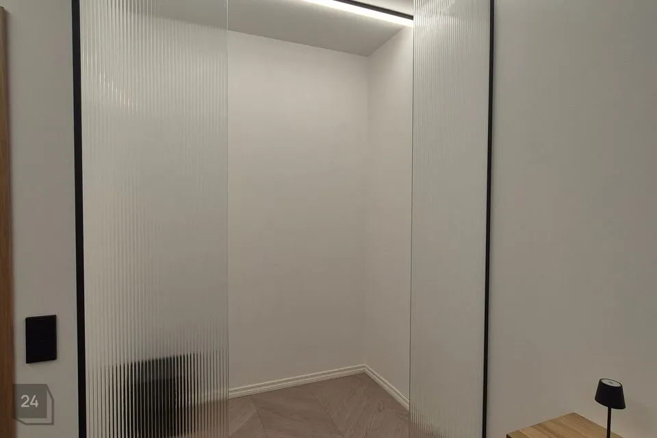 -Ruumi avaruse nimel paigaldatud Hafa Igloo seeria kaarjad dushiuksed, mida saab kokku klappida.