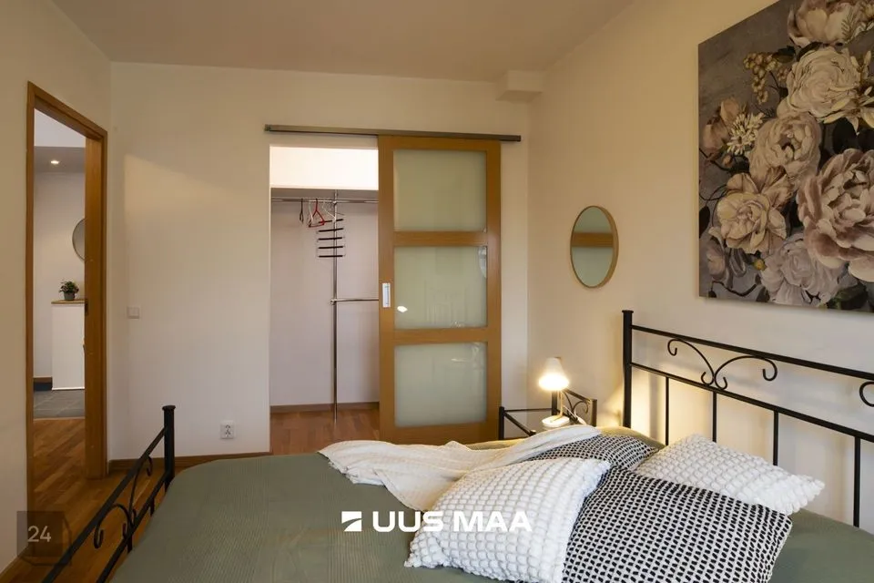 Äsja renoveeritud stiilne korter asub liftiga maja viiendal korrusel. Korteris on elutuba-köök, mahuka walk-in garderoobiga magamistuba, duširuum-wc ja esik kus samuti ruumikas garderboobkapp. Köögis kvaliteetne uus köögitehnika.