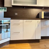 Вся мебель и техника, представленные на фото (кроме письменного стола и стула), входят в комплект: посудомоечная машина, микроволновка, плита, холодильник и т.д.