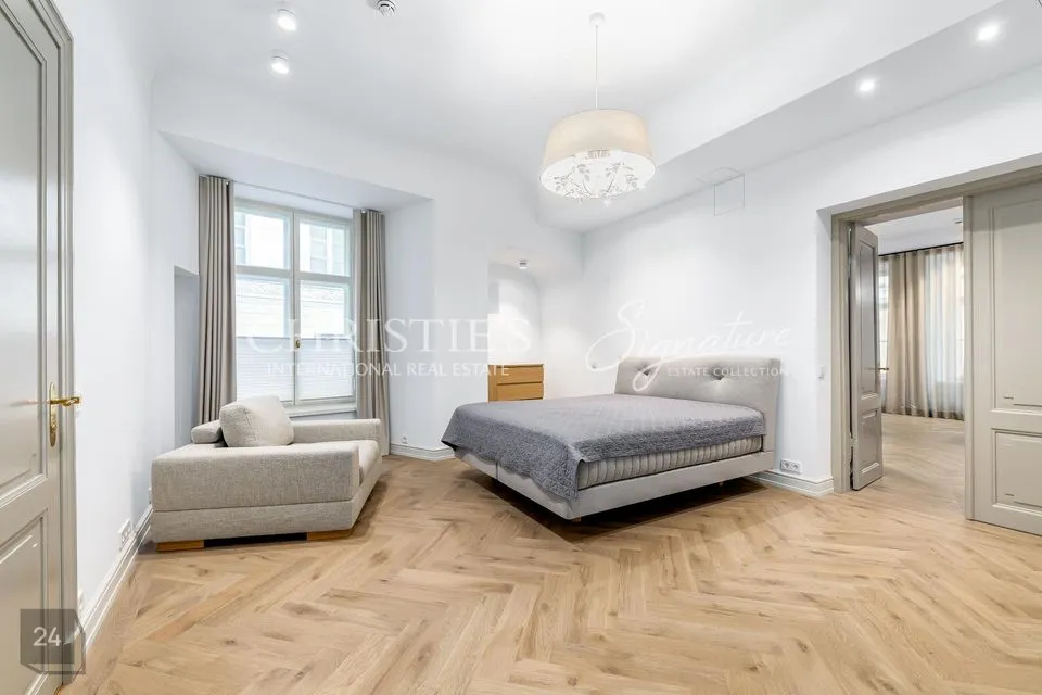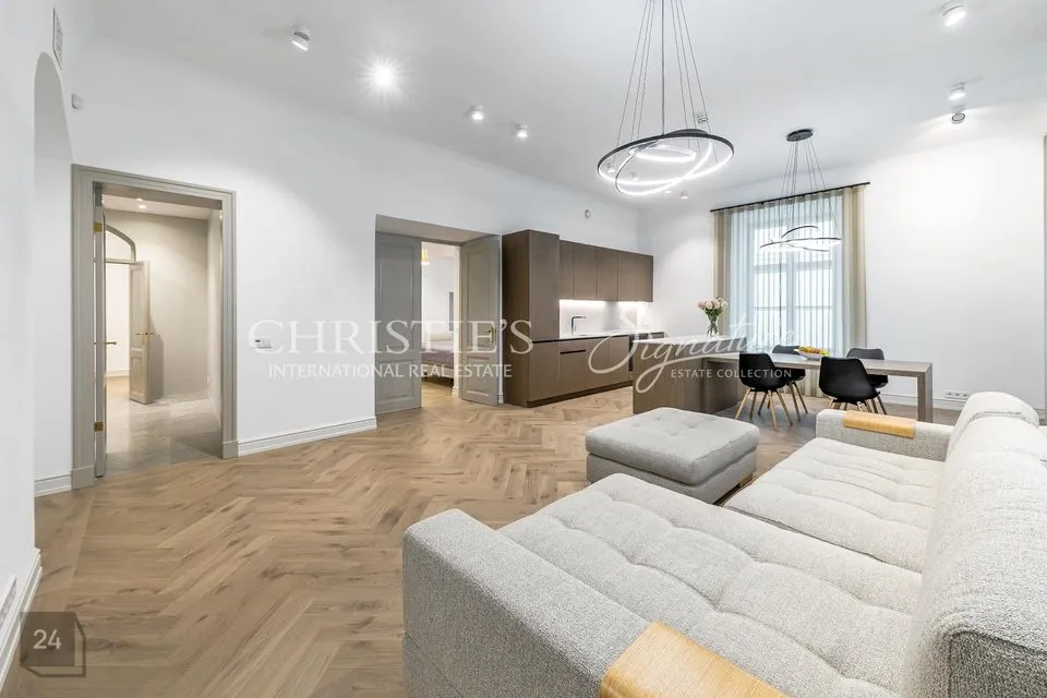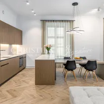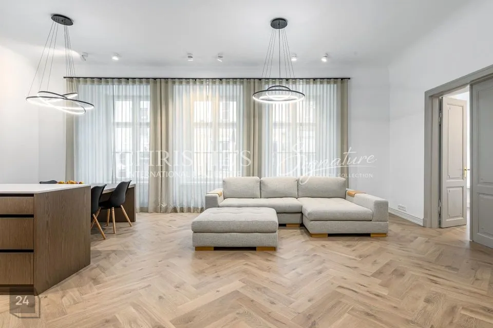 Korter on sisustatud kvaliteetse mööbli, köögimööbli ja köögitehnikaga. Esinduslikud kahepoolsed uksed, naturaalne parkett ja põrandaküte linna keskkütte baasil.