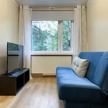 Korter on täielikult renoveeritud ning uuel üürnikul on võimalus elama tulla puhtale korralikule pinnale. Tegemist on ruumika 1-toalise sisustatud korteriga, kus köök on eraldiseisev. Olemas on kõik eluksvajalik tehnika ning mööbel, mis on samuti uued.