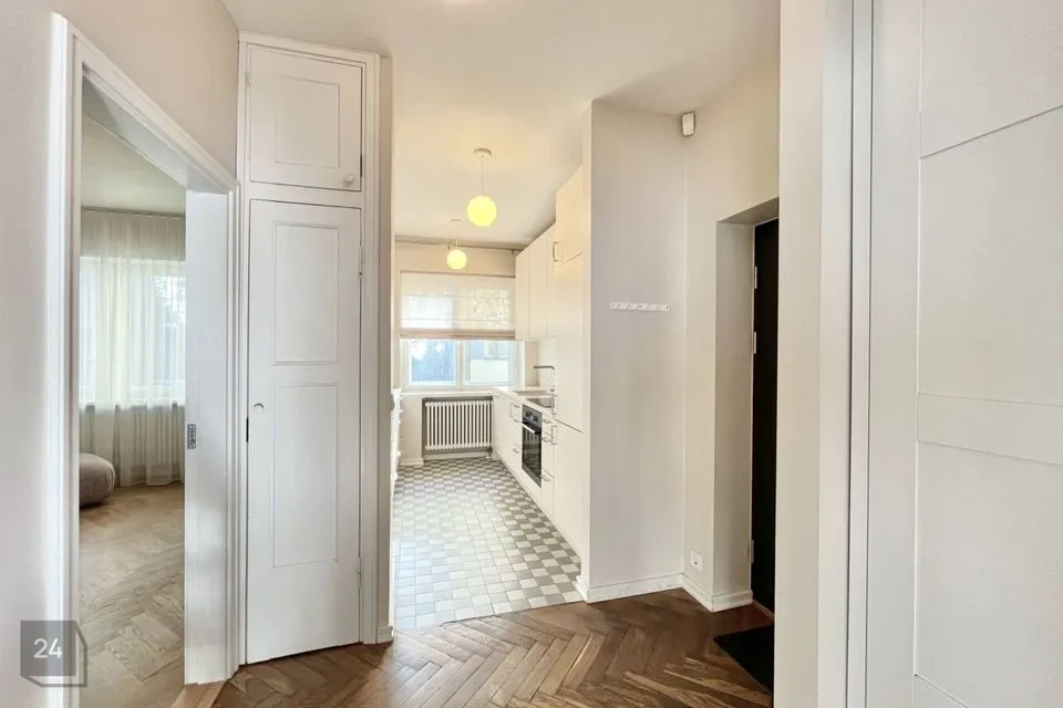 Ajaloolises 1934. aastal ehitatud ning täielikult restaureeritud hoones paiknev 3-toaline korter asub maja kolmandal korrusel. Restaureerimisel on oskuslikult säilitatud ajastu hingus – täispuidust kalasabaparkett, klassikalised klaasitud vaheuksed ja detailid, mis annavad ruumile kordumatu karakteri.