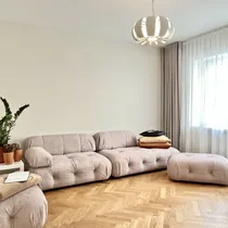 Terve korter on äsja möbleeritud ning kasutatud on nutikaid lahendusi, kus diivani mooduleid saab liigutada ja kombineerida vastavalt uue elaniku soovile ning vajadusele.