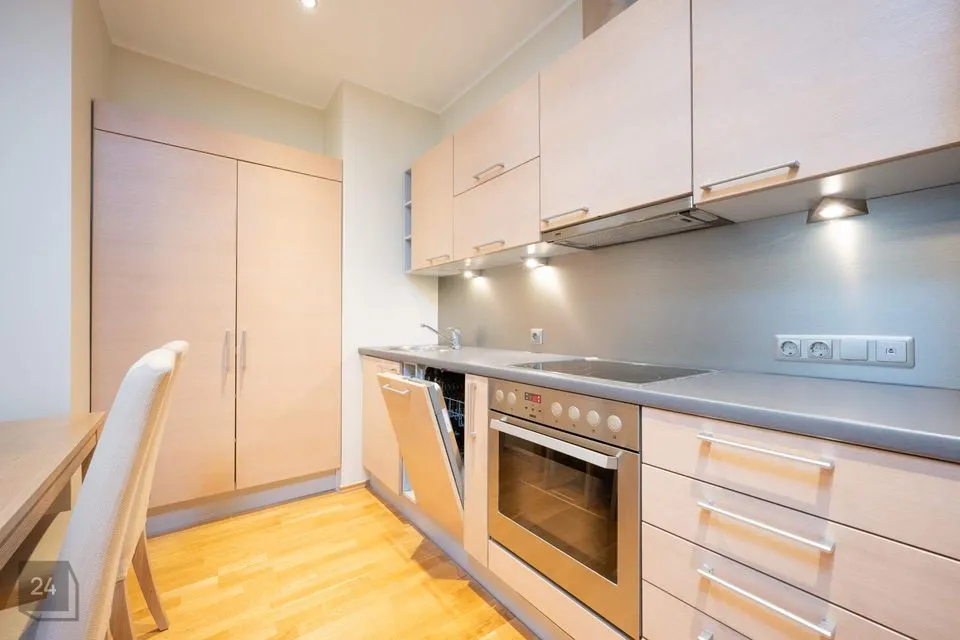 Korter on täielikult sisustatud - selles on köök koos integreeritud tehnikaga (külmkapp, ahi, pliit, kubu, nõudepesumasin), söögilaud ja toolid, lahtikäiv nurgadiivan, kardinad & rulood. Magamistoas on lai voodi ja seinakapp, kardin ja ruloo. Esikusse on tellitud garderoobikapp, mis saabub loetud nädalate jooksul. Vannitoas vann, valamu koos kapiga ja pesumasin.