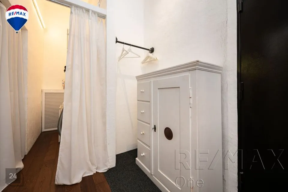Magamistoas on väga suur ja pehme 2-inimese voodi. Üsna mitmest ruutmeetrist koosnev garderoobiala mahutab ära nii rõivad kui tolmuimeja-kodutarbed.
