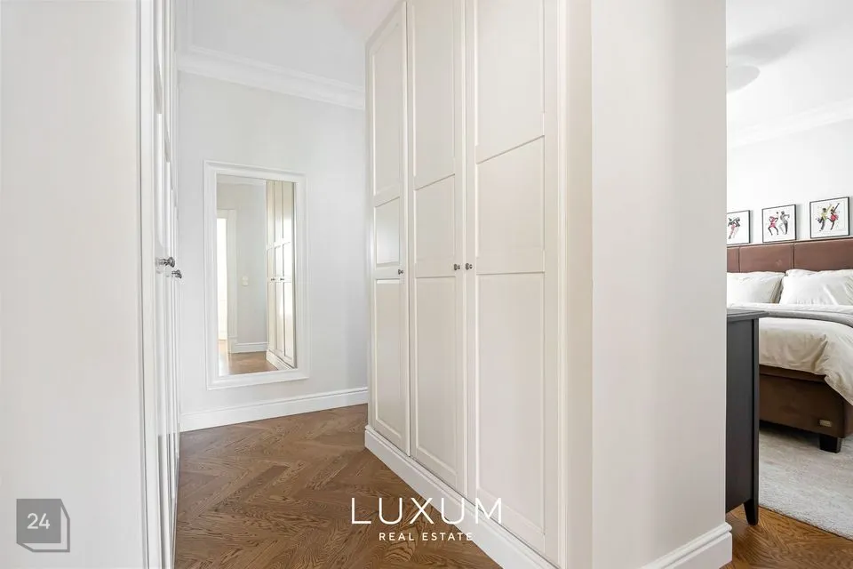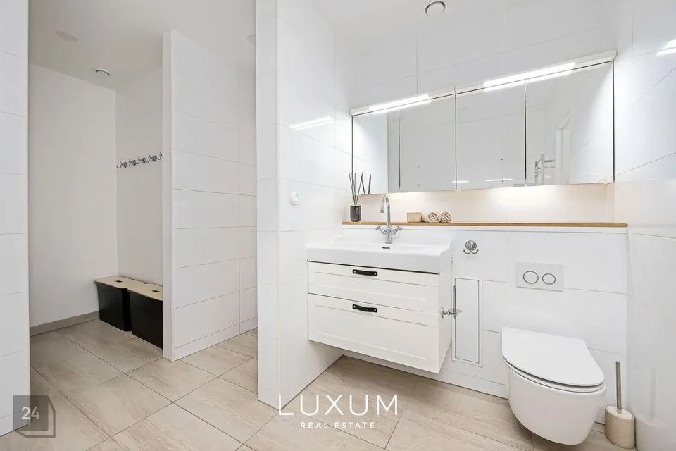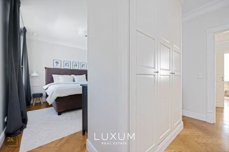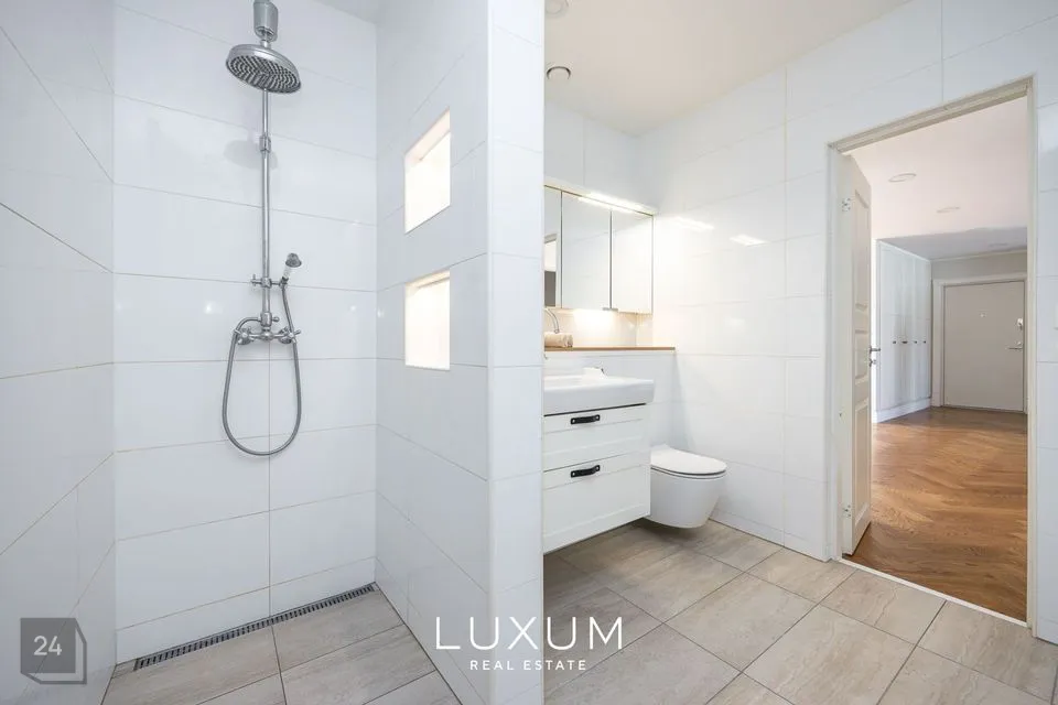 Esikus on suur, sisseehitatud mahukas garderoob, mis pakub rohkelt hoiustamisruumi. Elutuba, köök ja söögituba on mõnusalt avatud planeeringuga – kööki valgustab hommikupäike ja elutuba on suunatud õhtupäikese poole, luues hubase ja päikeselise atmosfääri. Korteri tagumises osas asub põhimagamistuba koos walk-in garderoobiga. Teine tuba, mis on nutikalt jagatud kaheks – magamistuba (10 m2) ja kodukontor (10 m2), asub korteri teises pooles. Magamistubade vahel asub ruumikas vannituba, kus on ka eraldi majapidamisosa.