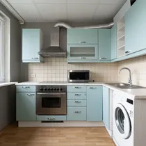 • köögimööbel koos tehnikaga (külmkapp, pliit ahjuga, õhupuhasti)