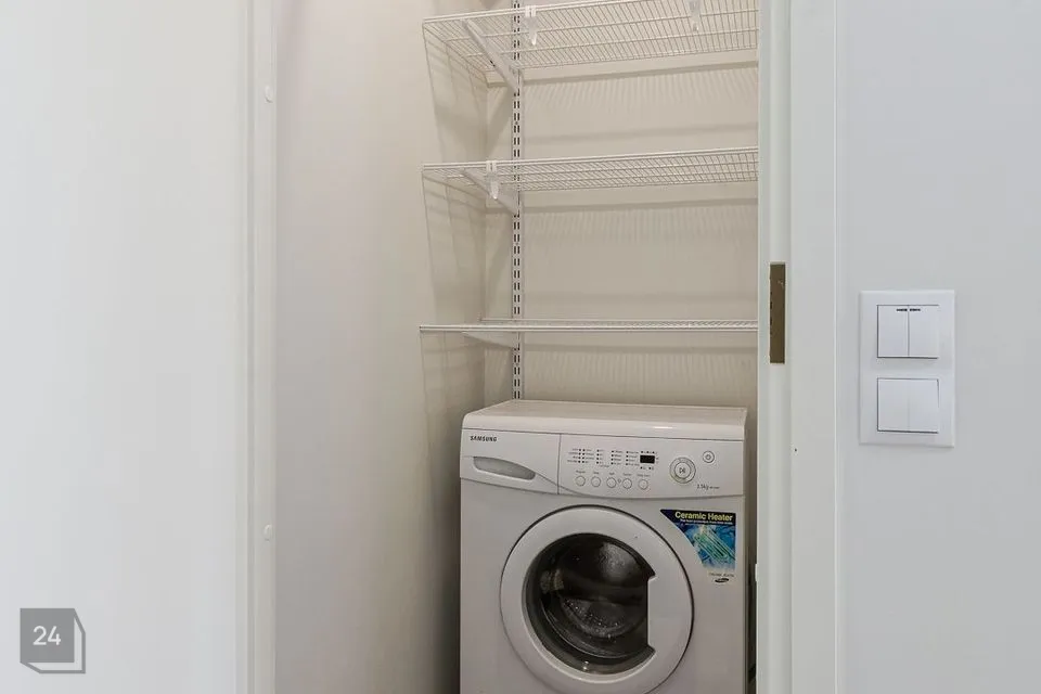 Olemas mahukas garderoob, kus paigaldatud pesumasin. Nurgadiivan käb lahti voodiks. Elutoast pääs rõdule. Juuli kuus rõdule ehitatakse klaasid.