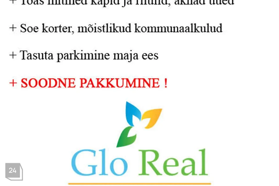 Lepingu sõlmimisel tuleb tasuda esimese kuu üür, garantiimakse (mis võrdub 1,5 kuu üürile) ja vahendustasu. Pikaajalised üürnikud on oodatud!