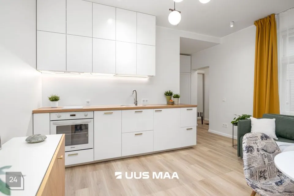 Pilkupüüdva interjööriga korteris on iga ruutmeeter leidnud otstarbeka kasutuse, mõjudes seejuures avaralt ja ruumikalt. Rohked ja avarad aknapinnad, kõrged laed ning kaunid toonid muudavad korteri valgusküllaseks ja helgeks. Selles kodus on olemas läbimõeldud valguslahendused, et luua hubane õhustik.