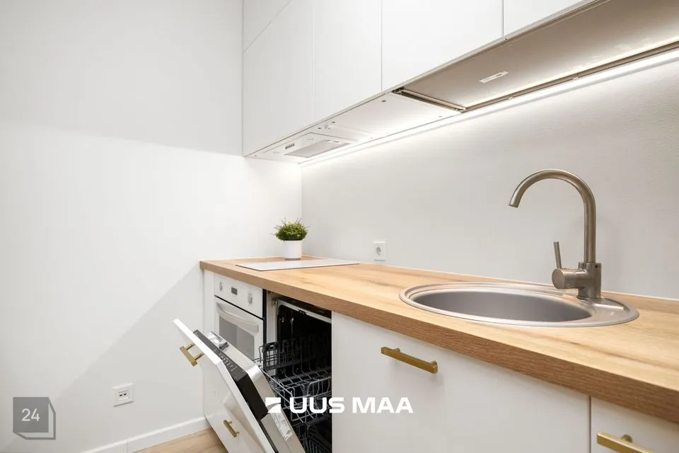 Köök on varustatud mugavaks eluks vajaliku integreeritud tehnikaga- külmkapp koos sügavkülmaga, nõudepesumasin, induktsioonpliit, praeahi ja õhupuhasti. Vannitoas pesumasin.